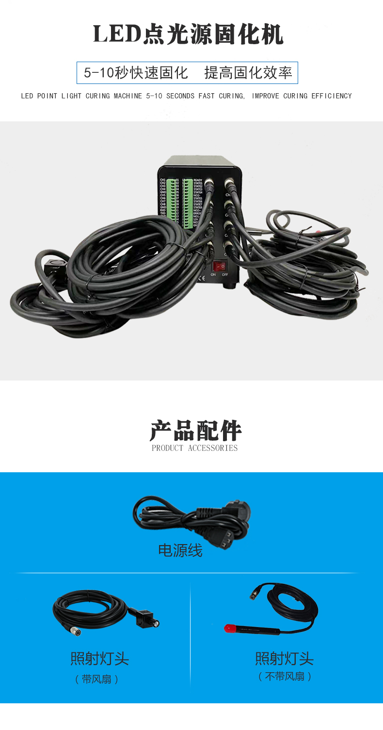 產品名稱:UVLED點光源固化機         產品機型:RZ-P90               波長:默認365nm(其他可選)